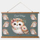 Cute Floral Owl with Bow Hanging Tapestry