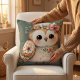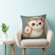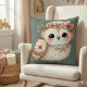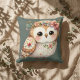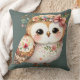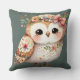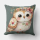 Cute Floral Owl with Bow Throw Pillow