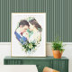 Romantic and elegant watercolor green leaves flowers and geometric frame, photo and custom text. You can edit photo filter.