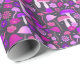 This wrapping paper is decorated with trippy, psychedelic illustrated mushrooms and flowers in shades of hot pink and bold purple.