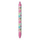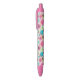 Very nice blue, or black ink pen. I will be buying more. The print was fine. I can easily see the print. The flowers look great.