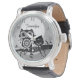 This watch has a black, white and grey vector illustration design showing a cute FLOWERpower owl with her sleepy baby on a swirly branch. In the background is a full moon. The clock numbers are a template object. If you like the clock more without them just delete the layer. The name on the watch is also a template object and can be changed easily into the right name or other text.