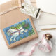 CUTE FLYING CHRISTMAS PONY PULLING PINECONE SLEIGH RECTANGULAR STICKER