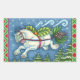 CUTE FLYING CHRISTMAS PONY PULLING PINECONE SLEIGH RECTANGULAR STICKER