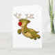 Cute Flying Christmas Reindeer With Clouds Holiday Card