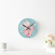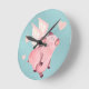 Cute Flying Pig with Wings When Pigs Fly Teal Round Clock