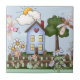 Cute Folk Country House and Picket Fence Art Ceramic Tile