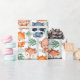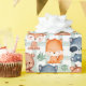 This adorable design features cute woodland animals, watercolor greenery leaves on a mint and white checkered background.
