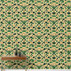 A whimsical pattern featuring adorable green forest animals surrounded by stylized trees and geometric shapes. The soft yellow background complements the dark green and orange tones, creating a playful, nature-inspired design perfect for kids' products and decor.