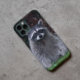 Trendy, protective phone cover for the Apple iPhone and features the photo image of a cute, forest Raccoon posing for the camera. Select case for your iPhone model and select case style.
