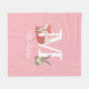Cute pink baby fleece blanket featuring a woodland forest baby fox cub and bunny rabbit sitting either side of the monogram and name. Designed by Thisisnotme©