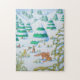 cute fox and rabbits playing snow scene jigsaw puzzle