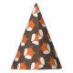 Cute fox party hats with a pattern of cartoon fox faces on a brown background.