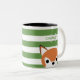 Super cute mug with green and white stripes, and an adorable fox.