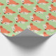 Cute Fox face Pattern on Green Wrapping Paper