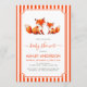 Cute Fox Mama and Baby Shower Animals Red Stripes Invitation