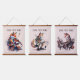 The polyester fabric displayed many wrinkles and several sharp creases throughout. At the bottom of the tapestry, I noticed a bulge in the fabric because it was not pulled tight enough before being connected to the wooden boards. It took me over an hour to spay water on the tapestry before putting it on an ironing board where I used a warm iron over a polyester cloth to remove the wrinkles and creases in the material. I was able to get out the wrinkles and creases that made that tapestry look as beautiful as its picture.