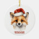 Add woodland magic to your holiday tree with this personalized fox Christmas ornament! Featuring a charming watercolor fox in a red Santa hat with snowflake details, and your child’s name printed below in festive script, this ceramic ornament makes a heartwarming keepsake. Perfect for kids, animal lovers, or baby's first Christmas, this custom decoration adds a personal touch to your tree and holiday traditions for years to come.