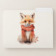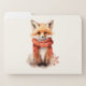 File folder trio with an illustration of a reddish orange fox pup. A subtle smile on his face. Wearing a nice red scarf for warmth.