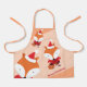 An apron that features three, cute, foxes in Santa outfits on an orange background with the customizable words “Merry Christmas” in red. This apron is ready for holiday cooking and crafting fun, or to bring the joy of Christmas to any time of year.