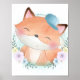 Cute whimsical fox watercolor poster. Cute for any children's room.