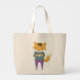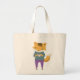 Cute fox with cup of tea large tote bag