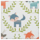 Cute Foxes & Deer With Green Wreath Pattern Fabric