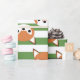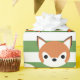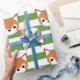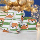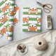 This cute wrapping paper features orange foxes, and green and white stripes.