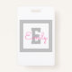 Cute Framed Name & Monogram | Light Grey & Pink Badge