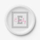 Cute Framed Name & Monogram | Light Grey & Pink Paper Plates
