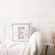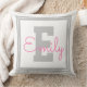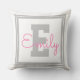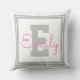 Cute Framed Name & Monogram | Light Grey & Pink Throw Pillow