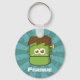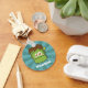 Cartoon of the cute green face of Frankenstein with a screw in its head on the left and a scar on the right of the face. Blue grunge starburst as background. For anyone who likes cute monsters or as a child friendly party favor for Halloween for kids.