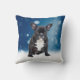 Cute French Bulldog Snow Stars Blue Christmas Throw Pillow