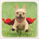 Cute French Bulldog Superhero Runs in Grass Square Paper Coaster