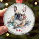 Cute French Bulldog Christmas ornament for your Frenchie! Original watercolor art by Nicole. Personalize with a custom name.