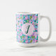 This cute frog art coffee mug has a monogram and hand drawn green frogs with green, blue and purple waterlilies on a pink background. Customize the design by editing the initial to personalize it. It's a chic girly design that will be a nice addition to your morning coffee routine. Great for amphibian lovers!