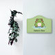 A green door sign with an illustration of a cute frog on its pond and customizable text below! Just add the forename of the child and offer it!