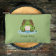 A green zipped pouch with an illustration of a cute frog on its pond and customizable text below! It could be perfect for a kid or a friend who loves Kawaii animal and nature!