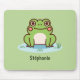 A green mouse pad with an illustration of a cute frog on its pond and customizable text below! Add to a funny touch at your work or make a nice gift to a kid!