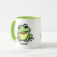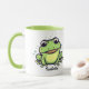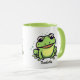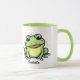 Cute green cartoon frog drawing personalized coffee mug with the message "you have to kiss a few frogs to find your prince!"