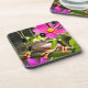 Cute Frog on Pink Flower Branch Beverage Coaster