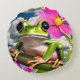 Cute Frog on Pink Flower Branch with Clouds Round Pillow