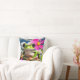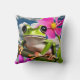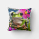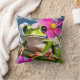 Cute Frog on Pink Flower Branch with Clouds Throw Pillow
