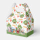 Add a custom touch to your child's birthday party with this adorable personalized thank you favor box. Box has a pattern of a green frog wearing a birthday party hat and next to a balloon and cake. There's also the text smile and space for two custom messages, such as thank you and the party information, as well as four of your favorite photos.