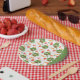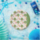 Add a custom touch to your child's birthday party with this adorable personalized paper plate. Paper plate has a pattern of a green frog wearing a birthday party hat and next to a balloon and cake. There's also the text smile and space for a custom message, such as happy birthday and your little one's name.