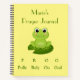 Frog is an acronym for "Fully Rely On God" and this notebook journal features a cute little green frog quietly sitting on its lily pad while the book owner keeps track of their prayers and prayer practices. Backgrounds (front and back) are a soft happy yellow, text is green and, of course, all customizable!