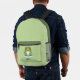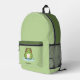 A green backpack with an illustration of a cute frog on its pond and customizable text below! Perfect for a kid or a friend who loves animals!