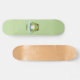 A green skateboard with an illustration of a cute frog on its pond and customizable text below: a perfect gift for a kid! You could also use them for home decoration or to have fun during your skate sessions!