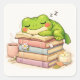 A cozy frog peacefully sleeping on a stack of books. This adorable frog design is perfect for book lovers, students, teachers, and anyone who enjoys reading and relaxing. A cute and cozy aesthetic design for stickers, notebooks, and laptops.