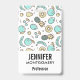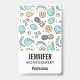 Name badge with a cute fruit pattern line drawing style. Light green and yellow colors. A fun summery design.
